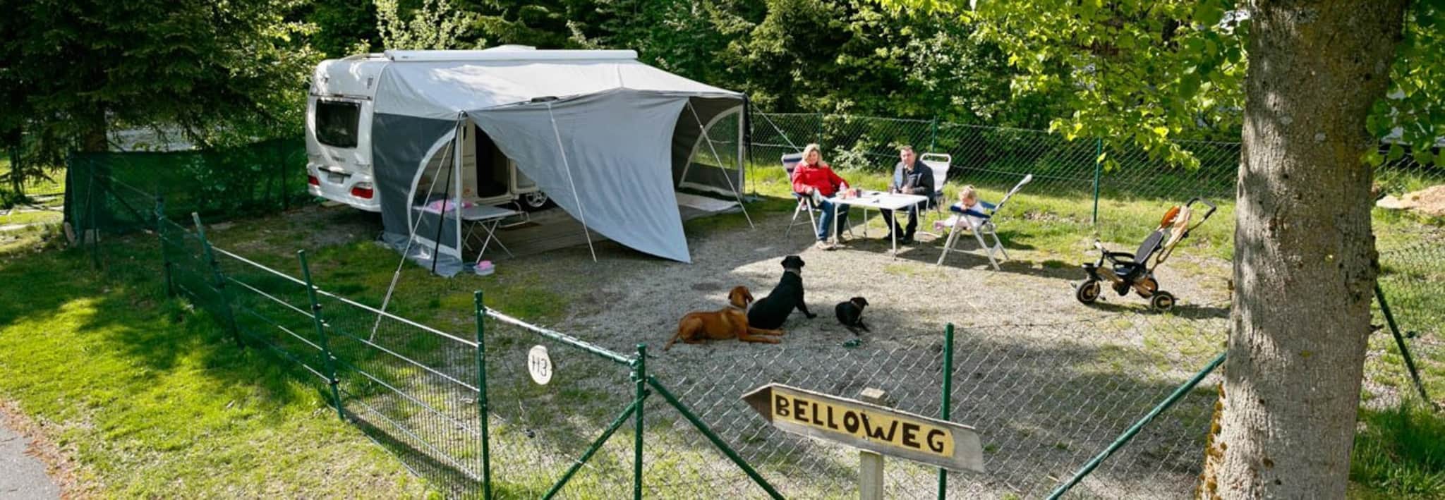 • Eingezäunte Stellplätze für Gäste mit Vierbeinern